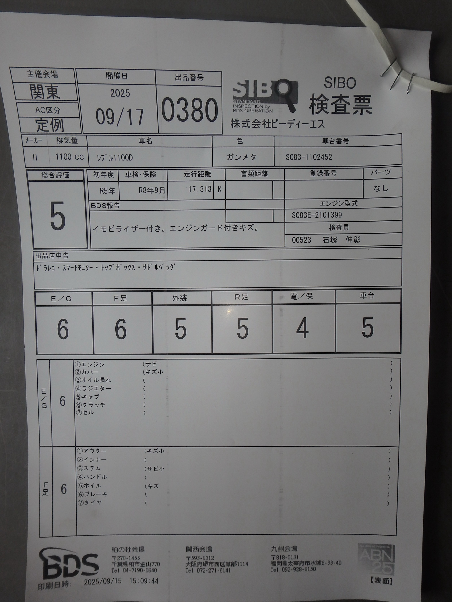 Mileage: 17313 km.